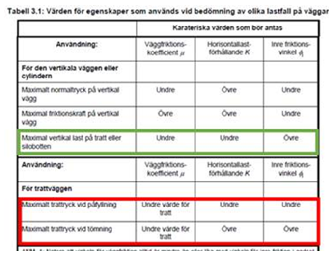 Svar: Jag tror att "laster" i avsnitt 2.4 bör tolkas som laster från vätskor enbart. De övriga lasterna som verkar på cisterner (egentyngd, vind, snö,...) behandlas i andra delar av Eurokoden. När det gäller lastkombinationer finns mycket information i Bilaga B, bland annat rekommenderade värde på partialkoefficienter för olika laster.